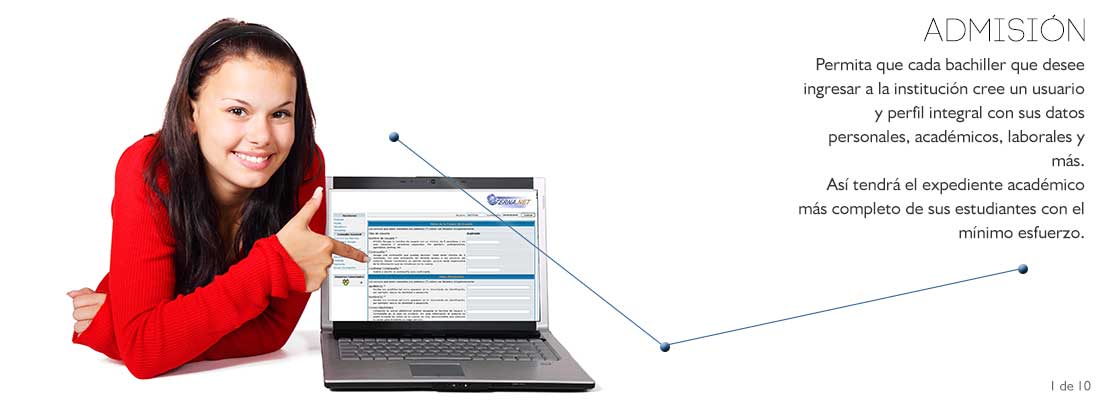 Organice su proceso de admisión de nuevos estudiantes captando a través del sistema a los aspirantes interesados en su oferta académica. Aproveche de obtener un perfil completo de los datos personales, familiares, académicos y profesionaes de sus aspirantes.
