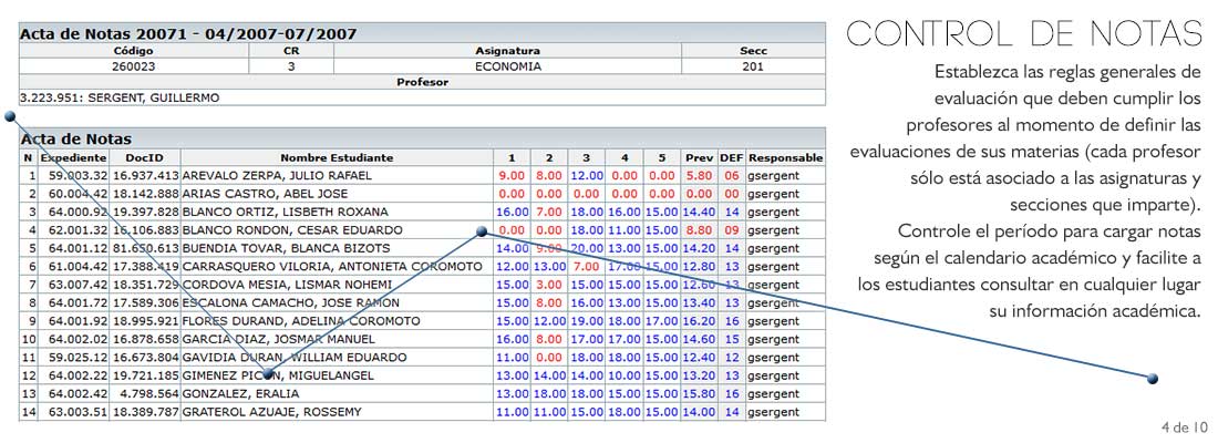 Los profesores pueden elaborar sus planes de evaluación en función de las reglas de la institución, consultar su lista de clase, cargar las notas parciales y finales directamente en TernaNet. Luego el acta puede ser impresa para ser firmada por el profesor responsable.