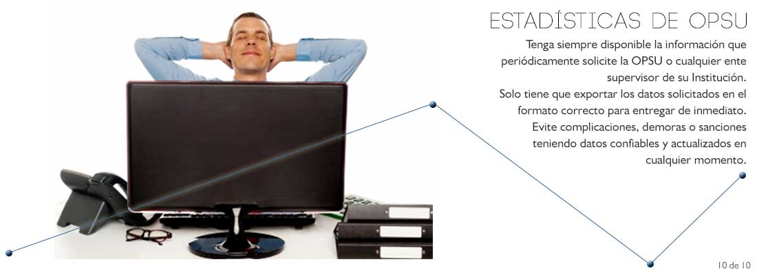 En la actualidad es común y frecuente que los organismos del Estado que supervisan las actividades de las instituciones académicas requieran información y estadísticas actualizadas. Genere fácilmente estos datos con el módulo de exportación especializado.
